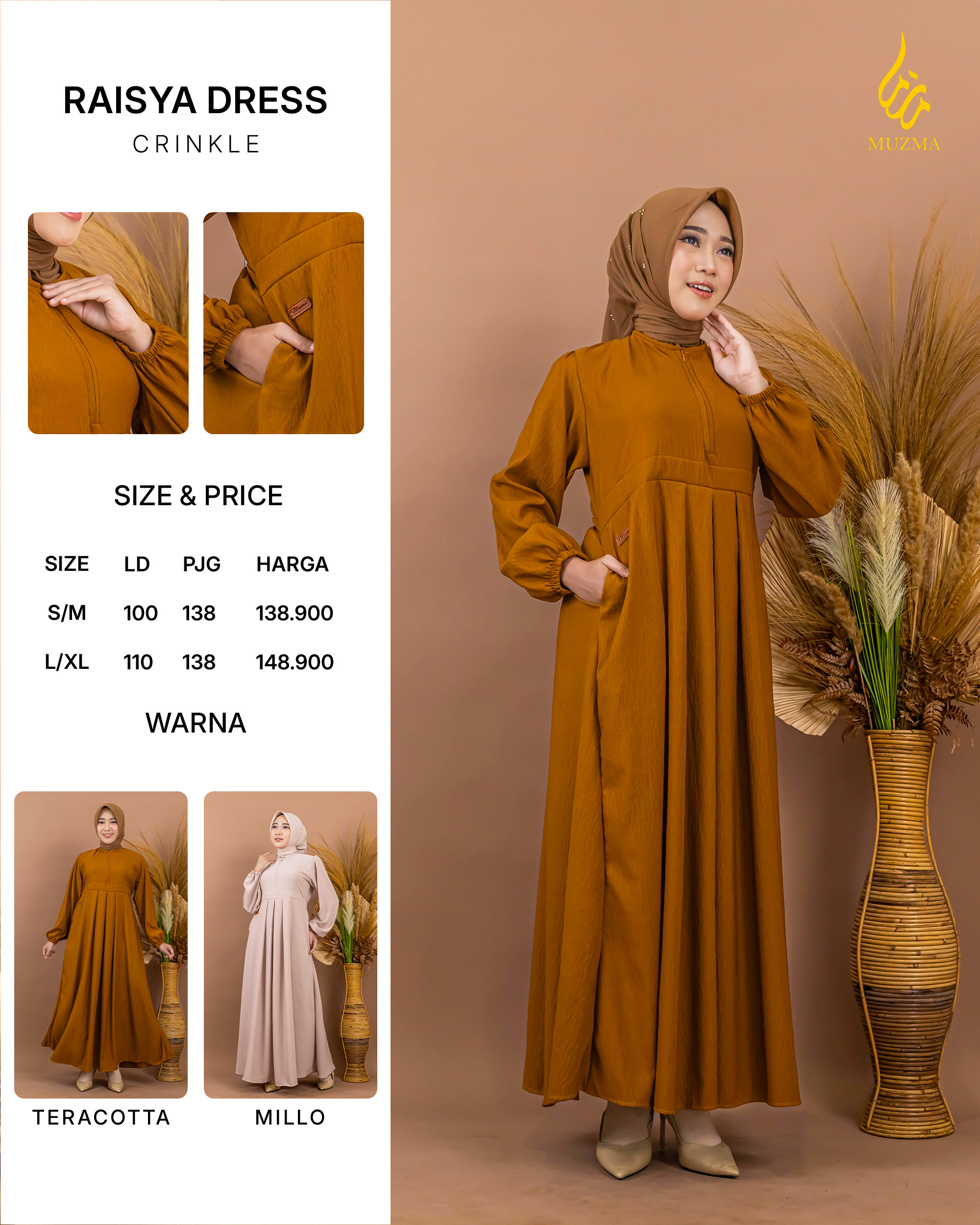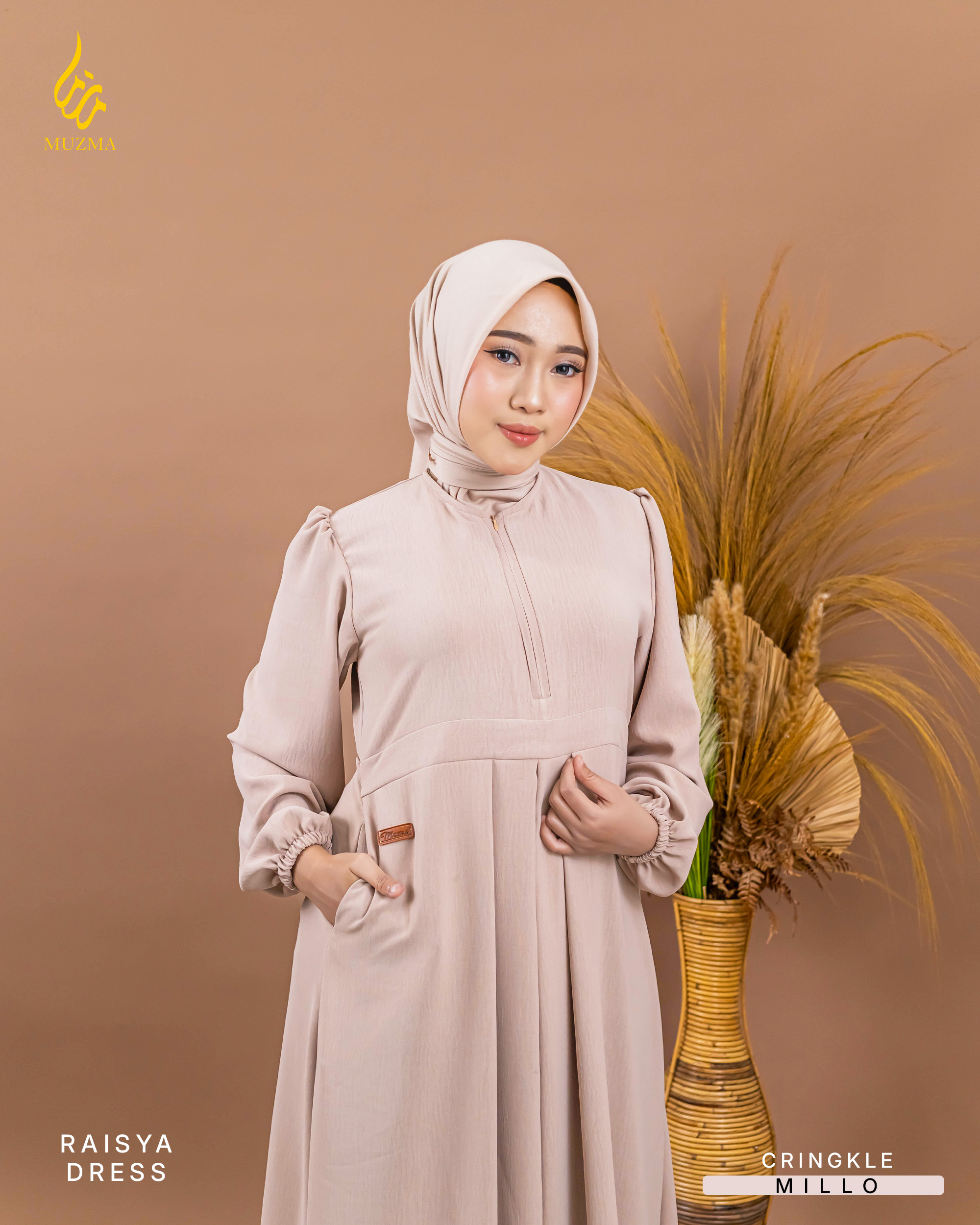 Crinkle Series by MUZMA Tampil simpel tapi tetap mempesona dengan Raisya Dress, gamis elegan yang nyaman dipakai seharian. Dibuat dari bahan crinkle premium yang adem, ringan, jatuh cantik, dan tidak mudah kusut siap menemani setiap aktivitasmu dengan gaya yang effortless.